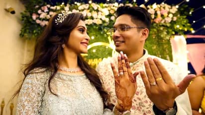 পারিবারিক রীতি মেনে মঙ্গলদীপের শিখা ছুঁইয়ে হবু স্বামীকে বরণ। পূজা সুন্দরী লেহেঙ্গা-চোলিতে। বরণ শেষে মিষ্টিমুখ।