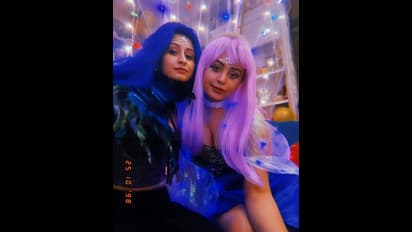 সদ্য হ্যালোইন পার্টির সাজে দেখা দিলেন ঋতাভরী চক্রবর্তী। সঙ্গে ছিলেন তাঁর দিদি। স্কাই রঙের পোশাক পরেন ঋতাভরী চক্রবর্তী। মাথায় ছিল একই রঙের পরচুল। চোখা গাঢ় মেকআপ আর ঠোঁটে ডার্ক লিপস্টিক। পোশাকের ভিতর দিয়ে উঁকি দিচ্ছিল তাঁর ক্লিভেজ।