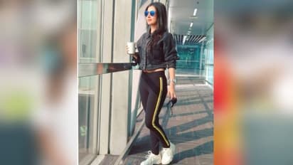 কালো ডেনিম জ্যাকেট সঙ্গে কালো টাইটস। ছিমছাম এয়ারপোর্ট লুকে দেখা গেল তাঁকে।