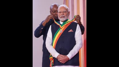 ঘানায় পা রাখার পরই প্রধানমন্ত্রী নরেন্দ্র মোদীকে দেওয়া হয় ঘানার সর্বোচ্চ সম্মান। এদিন ঘানার সর্বোচ্চ রাষ্ট্রীয় সম্মান 'অফিসার অফ দ্য অর্ডার অফ দ্য স্টার'-এ ভূষিত হয়েছেন তিনি। বৈশ্বিক নেতৃত্বে তাঁর অসামান্য অবদানের স্বীকৃতিস্বরূপ তাঁকে এই সম্মানে ভূষিত করা হয়। গত তিন দশকে এই প্রথম কোনও ভারতীয় প্রধানমন্ত্রী ঘানা সফর করলেন।