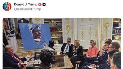 মার্কিন প্রেসিডেন্ট ডোনাল্ড ট্রাম্প মঙ্গলবার তার ট্রুথ সোশ্যাল প্ল্যাটফর্মে একটি পোস্ট শেয়ার করেছেন। এতে তাকে অন্যান্য ইউরোপীয় নেতাদের সঙ্গে একটি পুরনো ছবিতে দেখা যায়, যেখানে মার্কিন পতাকায় কানাডা, গ্রিনল্যান্ড এবং ভেনিজুয়েলাকে মার্কিন যুক্তরাষ্ট্রের অংশ হিসেবে দেখানো হয়েছে। পোস্টে, ট্রাম্পকে ওভাল অফিসের ভিতরে বসে থাকতে দেখা যায়, যেখানে ফরাসি প্রেসিডেন্ট ইমানুয়েল ম্যাক্রোঁ, ইতালির জর্জিয়া মেলোনি, যুক্তরাজ্যের প্রধানমন্ত্রী কেয়ার স্টারমার, ইউরোপীয় কমিশনের প্রেসিডেন্ট উরসুলা ভন ডার লেয়েন সহ অন্যান্য ন্যাটো নেতারা উপস্থিত ছিলেন।