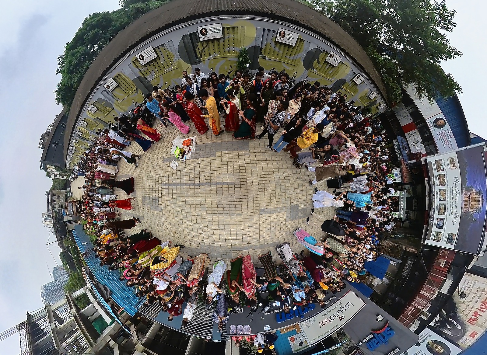 তেমনই আজ আয়োজিত হয় স্ট্রিট প্লে। ভারতীয় বস্ত্রের প্রতি বিদেশীদের প্রশংসার বিড়ম্বনা তুলে ধরতে এই উদ্যোগ নেওযা হয়।