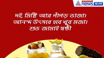 ‘দই, মিষ্টি আর পাঁপড় ভাজা। আনন্দ উৎসবে হবে খুব মজা। শুভ জামাই ষষ্ঠী।’