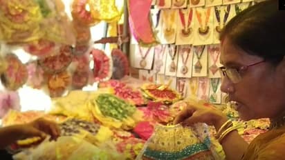 বাড়ির ঠাকুরের  জন্যও কেনা হচ্ছে নতুন পোশাক  দোকান ভর্তি সোনালি জরির রংবেরঙের ঘাগরা   ফুটপাতের কোনও দোকানই তেমন ফাঁকা নেই   তবুও ফুটপাতের ব্রিক্রেতারা হতাশ