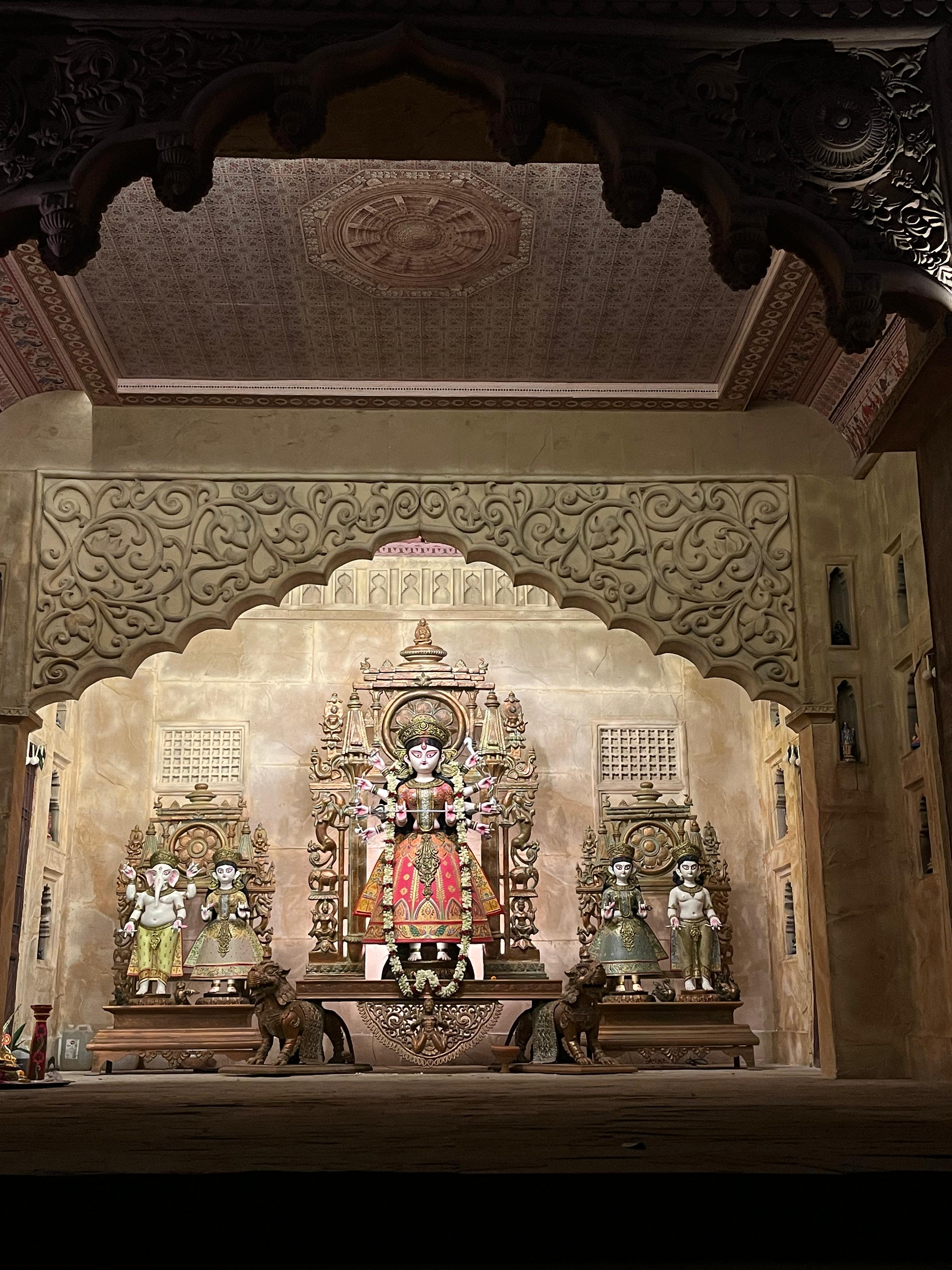 বলা চলে, স্থাপত্য, শিল্প এবং ভাবনার মিশ্রণে যেন অনবদ্য এক জীবন্ত রুপ ফুটে উঠেছে ইতিহাসের। অপরদিকে, দেখতে পাবেন একটি শিবের মূর্তি। তিনি যেন ধ্যানে মগ্ন। আর দুর্গা প্রতিমাও আপনার মন কাড়তে বাধ্য।