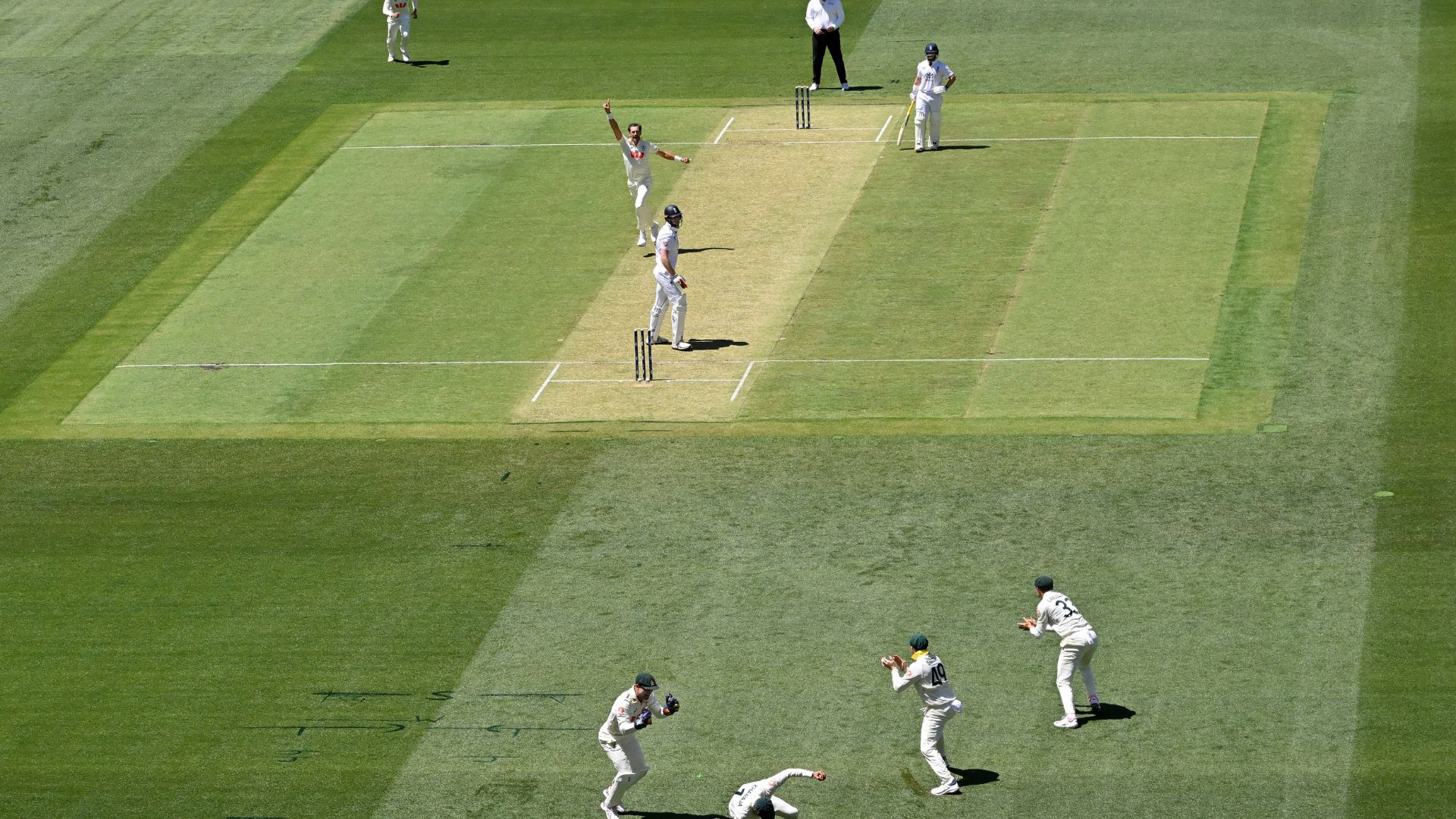 জোফ্রা আর্চার এবং মার্ক উড কোনও রান পাননি। শেষপর্যন্ত, ইংল্যান্ডের প্রথম ইনিংস শেষ হয় মাত্র ১৭২ রানে। অস্ট্রেলিয়ার হয়ে ৭ উইকেট নেন মিচেল স্টার্ক। কার্যত, একাই শেষ করে দেন ইংল্যান্ডকে। ২টি উইকেট পেয়েছেন ব্রেন্ডন ডগেট এবং ১টি উইকেট নেন ক্যামেরন গ্রিন।