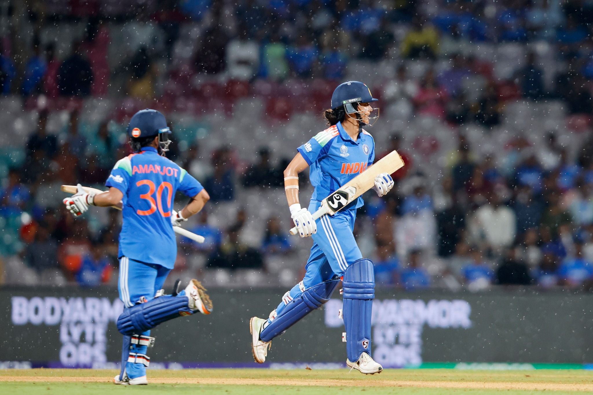 জবাবে ব্যাট করতে নেমে শুরুটা ভালোই করে টিম ইন্ডিয়া। ভারতের স্কোর যখন ৮.৪ ওভারে, বিনা উইকেটে ৫৭ রান, তখন আবার বৃষ্টি নামে। ক্রিজে তখন স্মৃতি মান্ধানা ৩৪ রানে এবং অমনজোত কৌর ১৫ রানে অপরাজিত আছেন। তারপর আর খেলা শুরু করা যায়নি। শেষপর্যন্ত, আম্পায়াররা ম্যাচটিকে পরিত্যক্ত ঘোষণা করেন।