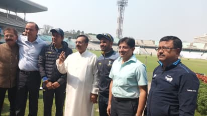 সিএবি সভাপতি স্নেহাশিস গঙ্গোপাধ্যায়, বাংলার কোচ লক্ষ্মীরত্ন শুক্লা, অধিনায়ক মনোজ তিওয়ারির সঙ্গে কথা বলেন ক্রীড়ামন্ত্রী অরূপ বিশ্বাস।
