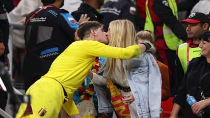 জয়ের উল্লাসে চুলোয় গেল নিয়ম। আয়োজক দেশ কাতারের রক্ষণশীল নিয়মকে বুড়ো আঞুল দেখিয়ে ভরা গ্যালারিতে হাজার হাজার দর্শকের সামনেই বন্ধবীকে চুম্বন করলেন বেলজিয়ামের গোলরক্ষক থিবো কুর্তোয়া। উল্লেখ্য কাতারের নিয়ম অনুযায়ী গুরুত্বর এটি গুরুতর অপরাধ। ঘটনায় বেশ চাপে কুর্তোয়া।