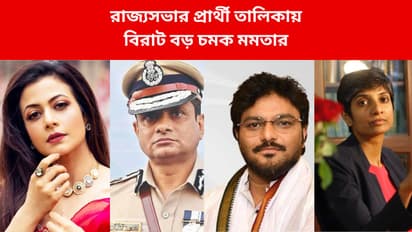 আসন্ন রাজ্যসভা নির্বাচনের জন্য প্রার্থী ঘোষণা করল তৃণমূল। রাজ্যের চার আসনের জন্য প্রার্থী ঘোষণা করা হয়েছে। তাতে চমক রয়েছে। প্রার্থী হচ্ছেন বাবুল সুপ্রিয়, রাজ্যের প্রাক্তন ডিজি রাজীব কুমার, মেনকা গুরুস্বামী এবং কোয়েল মল্লিক। পশ্চিমবঙ্গের যে ৫ জন রাজ্যসভা সদস্যের মেয়াদ উত্তীর্ণ হচ্ছে তাঁরা হলেন তৃণমূলের সাকেত গোখলে, ঋতব্রত বন্দ্যোপাধ্যায়, সুব্রত বক্সী, তৃণমূল থেকে কংগ্রেসে যাওয়ার পর রাজ্যসভার সদস্যপদ ছেড়ে যাওয়া মৌসম নুর এবং সিপিএম সাংসদ বিকাশরঞ্জন ভট্টাচার্য। ২ এপ্রিল রাজ্যসভার সাংসদ হিসেবে সকলেরই মেয়াদ ফুরোচ্ছে। এই পাঁচ আসনেই নির্বাচন হবে ১৬ মার্চ।