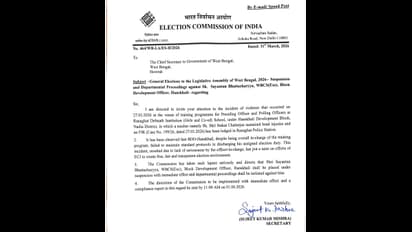 গত ২৭ মার্চ নদীয়ার হাঁসখালি ব্লকের অন্তর্গত রানাঘাট দেবনাথ ইনস্টিটিউশন স্কুলে প্রিসাইডিং ও পোলিং অফিসারদের প্রশিক্ষণ শিবির চলাকালীন হিংসার ঘটনা ঘটে। ওই ঘটনায় এক শিক্ষক, সৈকত চট্টোপাধ্যায় মাথায় আঘাত পান এবং রানাঘাট থানায় এফআইআর দায়ের হয়। কমিশনের পর্যবেক্ষণে উঠে এসেছে, সংশ্লিষ্ট প্রশিক্ষণ কর্মসূচির দায়িত্বে থাকা বিডিও সায়ন্তন ভট্টাচার্য দায়িত্ব পালনে গাফিলতি করেছেন এবং নির্ধারিত প্রোটোকল বজায় রাখতে ব্যর্থ হয়েছেন। এর ফলে অবাধ ও সুষ্ঠু নির্বাচনী পরিবেশ বজায় রাখার প্রচেষ্টায় ব্যাঘাত ঘটেছে বলে মত কমিশনের। এই প্রেক্ষিতে অবিলম্বে সাসপেনশন কার্যকর করার পাশাপাশি দ্রুত রিপোর্ট জমা দেওয়ার নির্দেশও দেওয়া হয়েছে রাজ্য প্রশাসনকে। এই বিষয়ে কমপ্লায়েন্স রিপোর্ট পাঠাতে বলা হয়েছে।