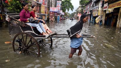 বৃষ্টির জমা জলে পুজোর মুখে বিপর্যস্ত কলকাতা। কোথায় হাঁটু সমান জল। কোথাও আবার এক কোমর। কোথাও গোড়ালির ওপর জল। দ্বিতীয়ার দিন সকাল থেকেই বিপর্যস্ত তিলোত্তমার জনজীবন। সকালে বেরিয়ে নাজেহাল অফিস যাত্রী থেকে শুরু করে নিত্যযাত্রীরা। কোথায়ও রাস্তায় জমা জলে থমকে গিয়েছে বাস। কোথাও আবার বাইক, মোটর সাইকেল। এদিন সকাল থেকেই ব্যহত মেট্রো ও ট্রেন পরিষেবা। হাওড়া ও পার্ক সার্কাসে লাইনের ওপর দিয়ে বইছে জল। কিন্তু এদিন তিলোত্তমাকে সচল রাখল হাতে টানা নিষিদ্ধ রিকশা।