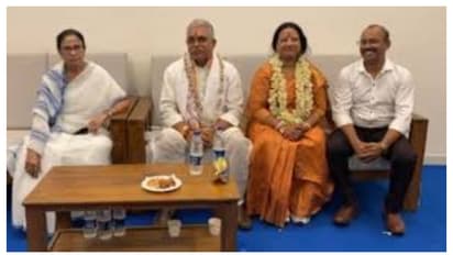 দিঘায় জগন্নাথ মন্দির দর্শনের পাশাপাশি সস্ত্রীক দিলীপ ঘোষ দেখা করেছিলেন মমতা বন্দ্যোপাধ্যায়ের সঙ্গে। সেই ছবি সোশ্যাল মিডিয়ায় ভাইরাল হয়েছে। যা নিয়ে চর্চা শুরু হয়েছে রাজ্য রাজনীতিতে।