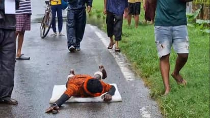 এদিন শম্ভু যখন গোবরডাঙ্গা থানার বড়পোল এলাকা থেকে দণ্ডি কেঁটে একটু একটু করে কেদারনাথের উদ্দেশ্য এগিয়ে যাচ্ছেন ঠিক তখন আমাদের ক্যামেরায় ধরা পড়ে এই বিরল দৃশ্য