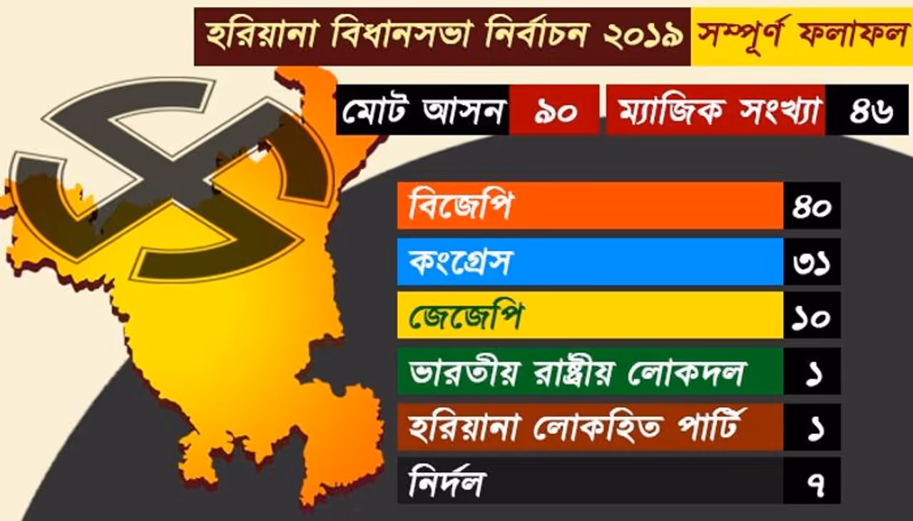 ৯০ আসনের হরিয়ানা বিধানসভায় সরকার গড়ার ম্যাজিক সংখ্যা ৪৬। বিজেপি পেয়েছে ৪০টি আসন, কংগ্রেস ৩১ এবং জেজেপি ১০টি। এছাড়া ভারতীয় রাষ্ট্রীয় লোকদল এবং হরিয়ানা লোকহিত পার্টি ১টি করে ও ৭টি আসনে জয়ী হয়েছে নির্দল প্রার্থীরা। অর্থাৎ সরকার গড়তে বিজেপির দরকার ছিল আরও অন্তত ৬ জনের সমর্থন।
