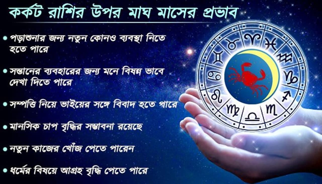 মাঘ বাংলার দশম মাস এই মাসের আরেক নাম মাঘা রাশিচক্রের চতুর্থ রাশি কর্কট মাঘ মাস কর্কট রাশির উপর কেমন প্রভাব ফেলবে