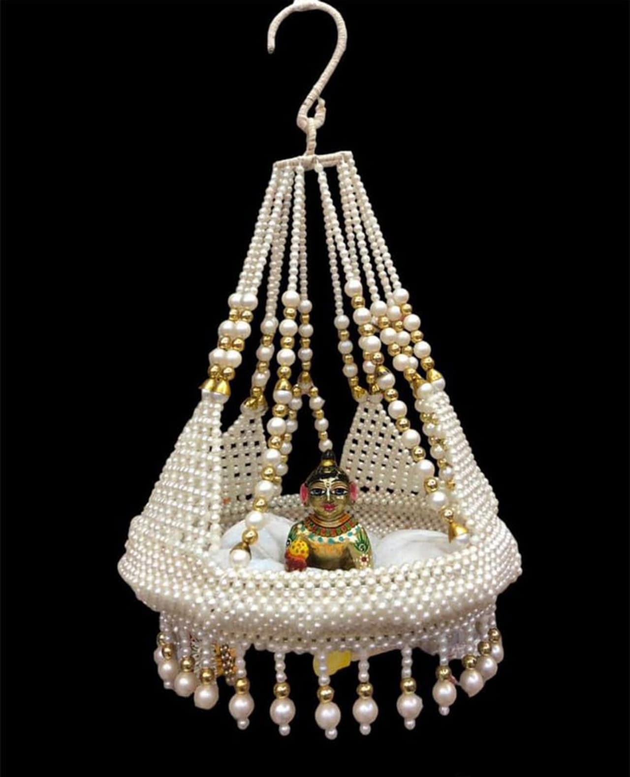 আপনি যেমন একটি ছোট দোল প্রস্তুত করতে পারেন। ছোট মুক্তার পুঁতি দিয়ে তৈরি এই দোলনার জন্য আপনি যে কোনও রঙ বেছে নিতে পারেন এবং শ্রী কৃষ্ণের প্রিয় ময়ূরের পালকও যোগ করতে পারেন।