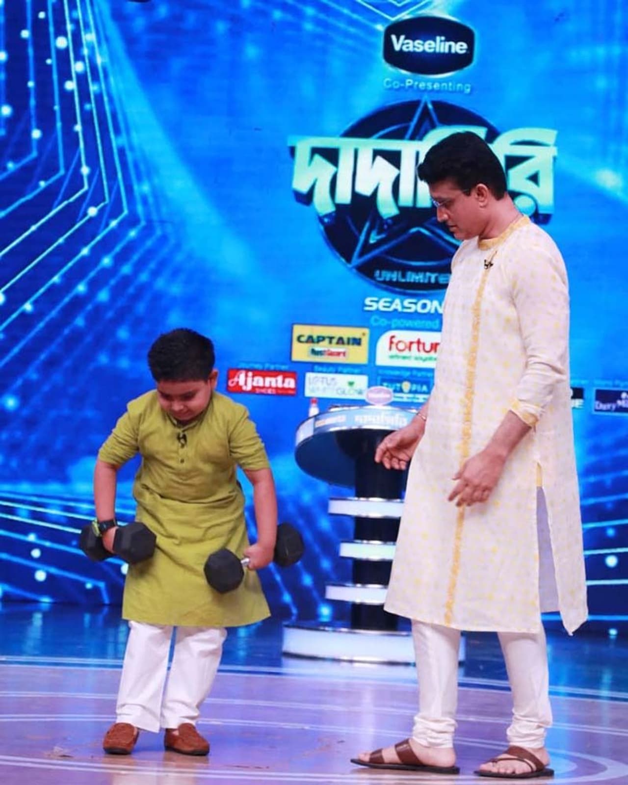আর কদিন পরই বর্ষবরণ উৎসব। উৎসবে গা ভাসাতে প্রস্তুত সকলে। প্রস্তুতি যেমন চলছে দোকানে দোকানে, তেমনই প্রস্তুতি চলছে চ্যানেলগুলোতে। এখন নববর্ষের আমেজ ‘দাদাগিরি’-তেও। দর্শকদের নতুন কিছু উপহার দিকে নতুন কিছু পরিকল্পনা করেছেন পরিচালক। আর সে কারণেই মঞ্চে হাজির হলেন খুঁদেরা।