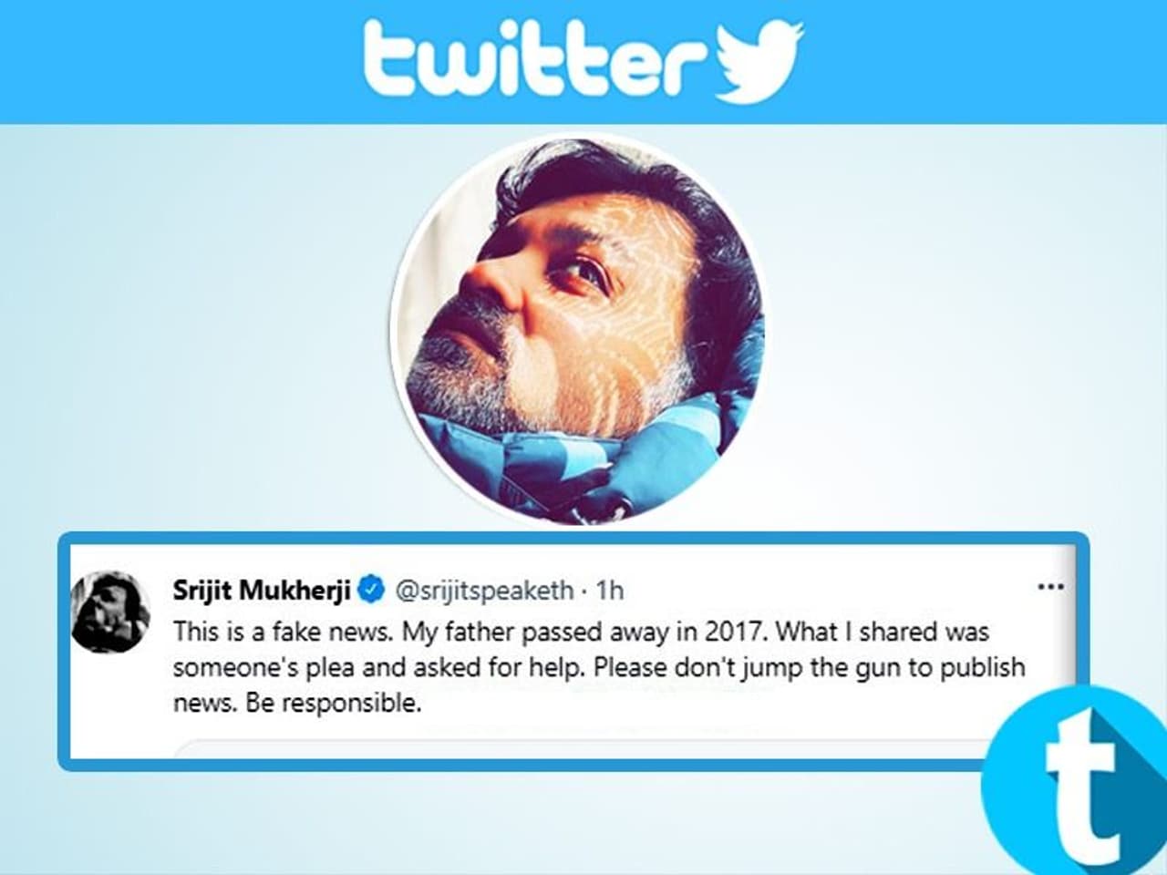 ভুল ভাঙে কিছুক্ষণ পরেই। কারণ সৃজিত মুখোপাধ্যায় তার টুইটার অ্যাকাউন্ট থেকে টুইটটি ডিলিট করে দেন। এবং পরবর্তী এক টুইটে তিনি জানান তার পিতা ২০১৭ সালেই প্রয়াত হয়েছেন। ব্যারাকপুরের আশপাশের কেউ তার বাবার প্রয়াণের খবর দিয়ে সৃজিতের কাছে সাহায্য চেয়েছিলেন। সেই বার্তাই তিনি তার টুইটার অ্যাকাউন্টে এমন ভাবে শেয়ার করেছিলেন যেন মনে হচ্ছিল সৃজিতই তার পিতাকে হারিয়েছেন। সৃজিত মুখোপাধ্যায় বাংলা চলচ্চিত্রের এক খ্যাতনামা নাম। রোজ তার টুইটার অ্যাকাউন্টে রি-টুইটের সংখ্যাও কয়েক হাজার ছাপিয়ে যায়। দেশ-বিদেশ থেকে অনেকেও সৃজিতকে টুইটারে ফলো করেন। অবশেষে সৃজিতের নতুন টুইটে ধোঁয়াশা কাটে। এবং জানা যায়, ২০১৭ সালেই প্রয়াত হয়েছিলেন তার পিতা।