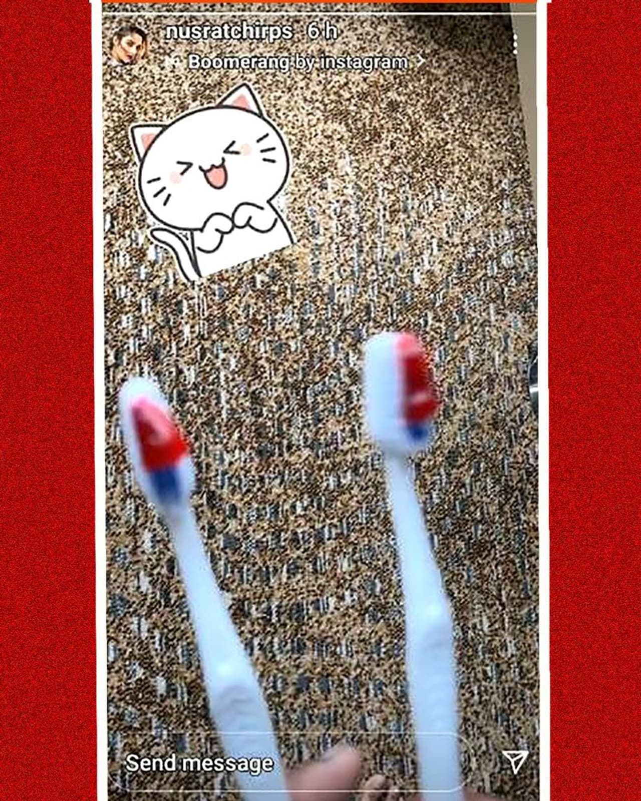 সম্প্রতি নিজের ইনস্টা স্টোরিতে দুটো পেস্ট লাগানো টুথব্রাশের ছবি পোস্ট করেছেন। আর তা দেখেই জল্পনা যেন একলাফে বেড়ে গিয়েছে। ইতিমধ্যেই যশ দাশগুপ্তের ভোট হয়ে গিয়েছে। তবে কি নির্বাচনের ক্লান্তি কাটিয়ে এক ছাদের তলায় শান্তি খুঁজে নিচ্ছেন যশ-নুসরত। যদিও তাও বলা সম্ভব নয়।