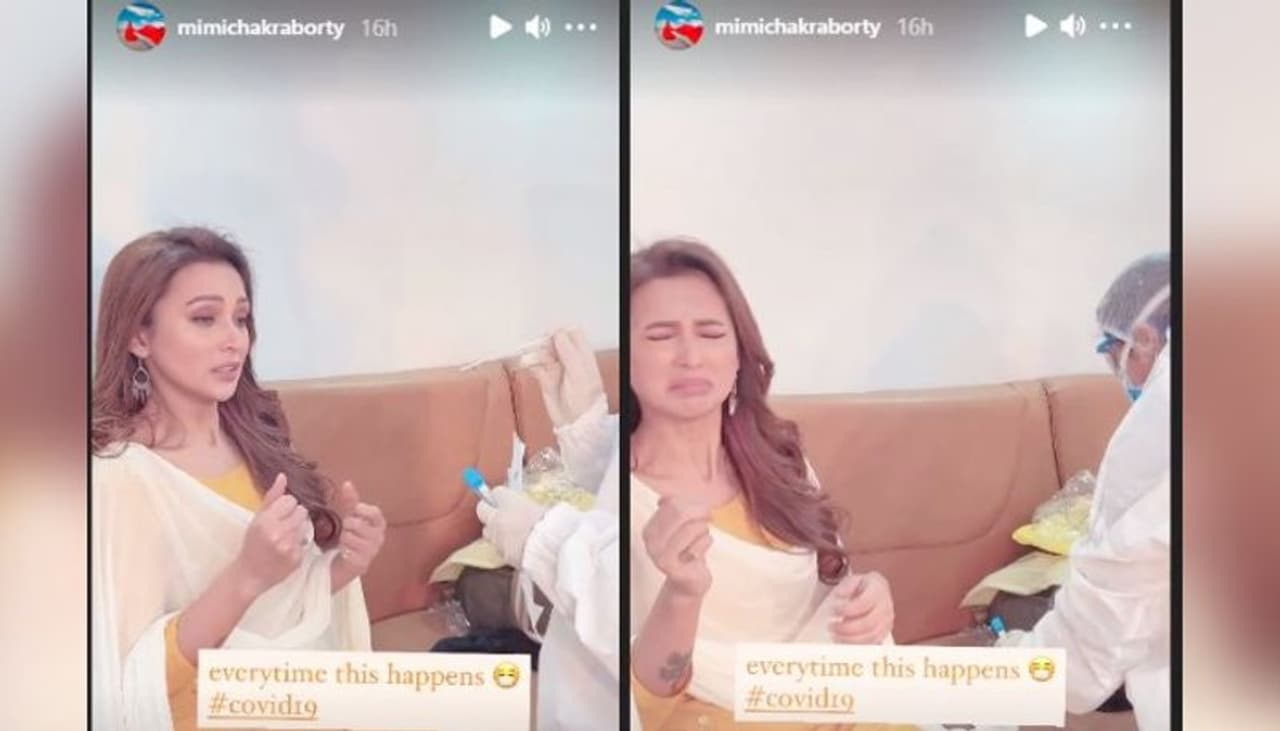 সম্প্রতি একটি ভিডিও শেয়ার করেছেন মিমি চক্রবর্তী। যেখানে তাঁক কোভিড পরীক্ষা নিতে দেখা যাচ্ছে। হলুদ রঙের সালোওয়ার কামিজে সোফায় বসে তিনি। পিপিই কিট পরা স্বাস্থ্যকর্মী নমুনা নিচ্ছেন মিমির। একটি লম্বা সরু বাড দিয়েই নেওয়া হয় স্যাম্পেল। মিমিরও সেইভাবেই হচ্ছিল স্যাম্পেল নেওয়া। এই পদ্ধতির জেরে মহা সমস্যায় পড়লেন মিমি। সেই লম্বা বাজ নাকের মধ্যে ঢুকতেই একেবারে কেঁপে উঠলেন অভিনেত্রী।