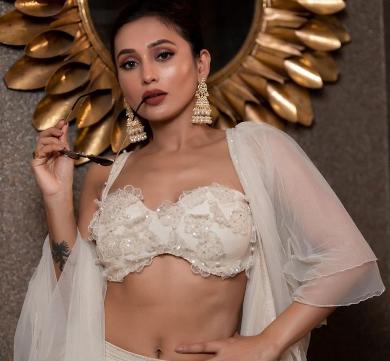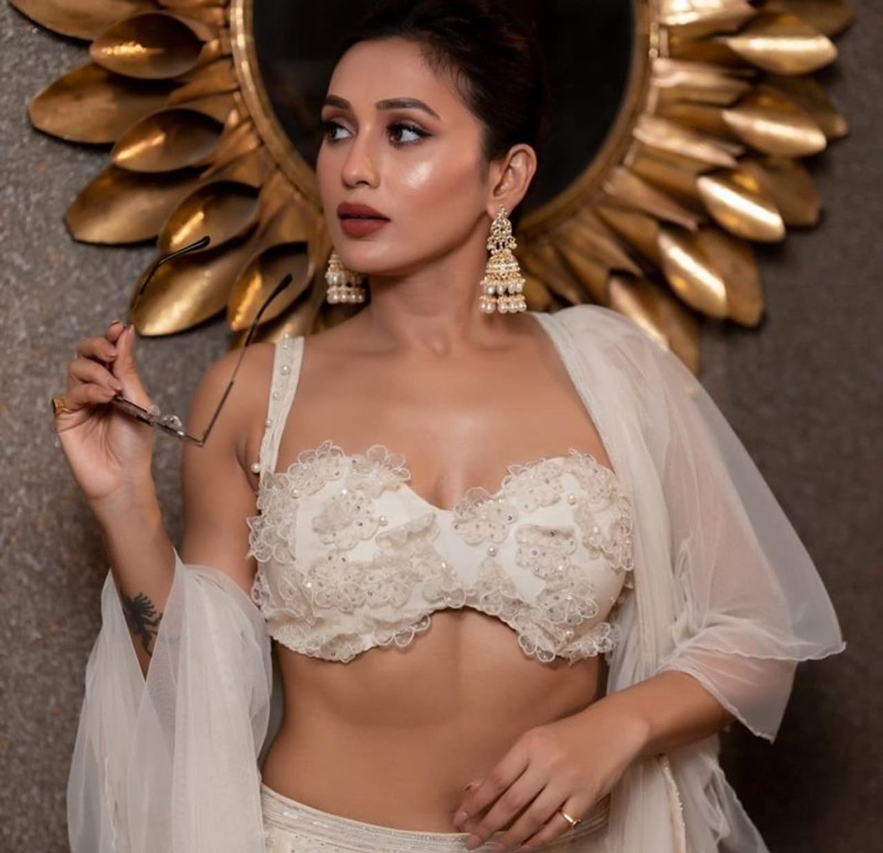 এ দিন মিমির ইনস্টাগ্রামে জ্বলছে চারটি ছবি। দুধসাদা পালকের মতো নরম শিফনের সিক্যুয়েন ব্রালেট। তাতে একই রঙের চুমকির কাজ। কোমর কামড়ে সাদা লেহেঙ্গা। দুই কাঁধ ছড়িয়ে শিফনের দু’পাট্টা। উন্মুক্ত বক্ষদেশ, নাভি।