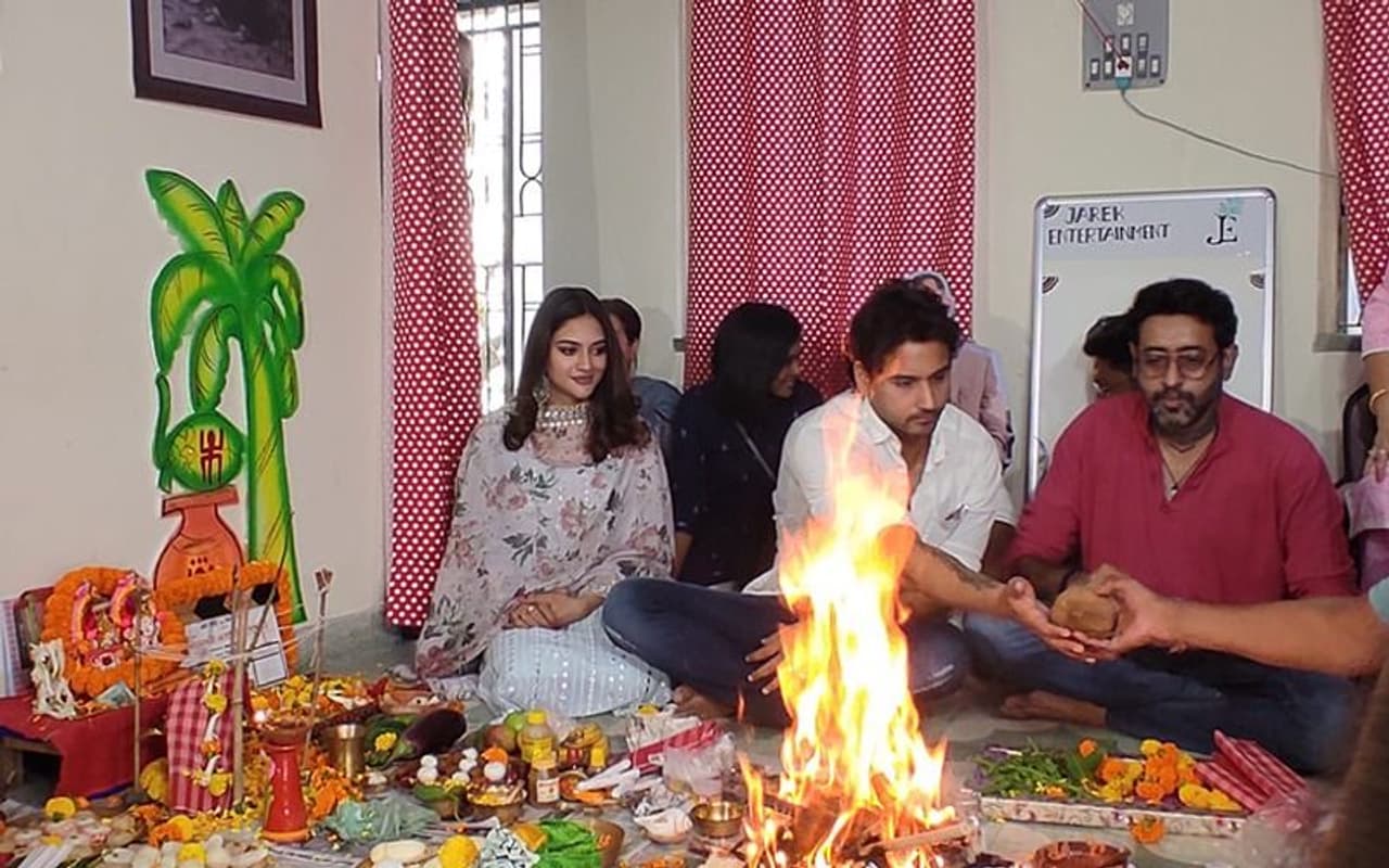 বৃহস্পতিবারই অনুষ্ঠিত হল নতুন ছবির 'শুভ মহরত'। ছেলে হওয়ার পর এবার নতুন ছবিতে স্বামী যশের (Yash Dasgupta)। সঙ্গেই জুটি বাধতে চলেছেন নুসরত জাহান (Nusrat Jahan)। বিয়ে এবং সন্তান জন্মের পর এটাই প্রথম কাজ যশরত জুটির। এই খবর প্রকাশ্যে আসার পর থেকেই উত্তেজনার পারদ তুঙ্গে। পরিচালক শিলাদিত্য ভৌমিক এবং প্রযোজক এনা সাহার নতুন ছবি 'মাস্টারমশাই আপনি কিছু দেখেননি'-তে একসঙ্গে জুটি বাধতে চলেছেন যশ ও নুসরত। ছবির 'শুভ মহরতের' দিনই একসঙ্গে পাশাপাশি পুজোতে বসেছেন যশ ও নুসরত(Nusrat Jahan - Yash Dasgupta)।