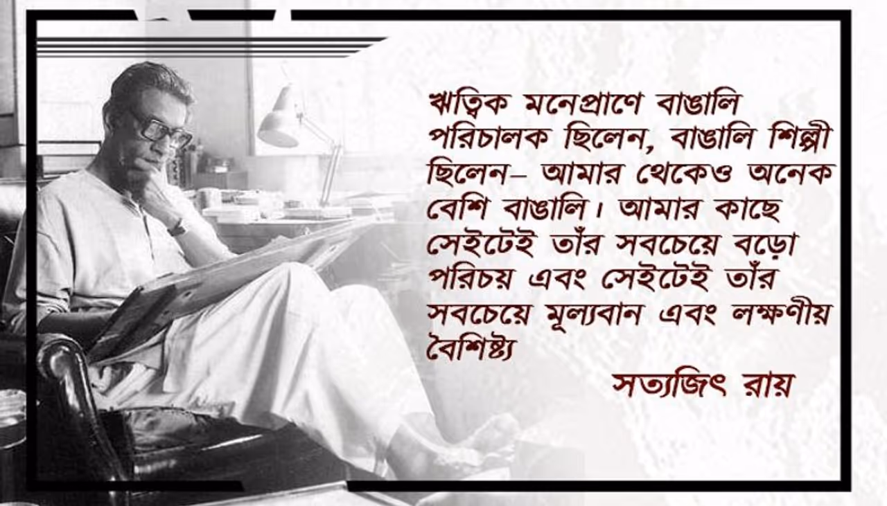 বাংলা, বাঙালি, বাংলা ভাবধারা ছিল ঘটকের রন্ধ্রে রন্ধ্রে। সত্যজিৎ রায় তাঁকে উল্লেশ করে লিখে ছিলেন- ঋত্বিক মনেপ্রাণে বাঙালি পরিচালক ছিলেন, বাঙালি শিল্পী ছিলেন– আমার থেকেও অনেক বেশি বাঙালি। আমার কাছে সেইটেই তাঁর সবচেয়ে বড়ো পরিচয় এবং সেইটেই তাঁর সবচেয়ে মূল্যবান এবং লক্ষণীয় বৈশিষ্ট্য।