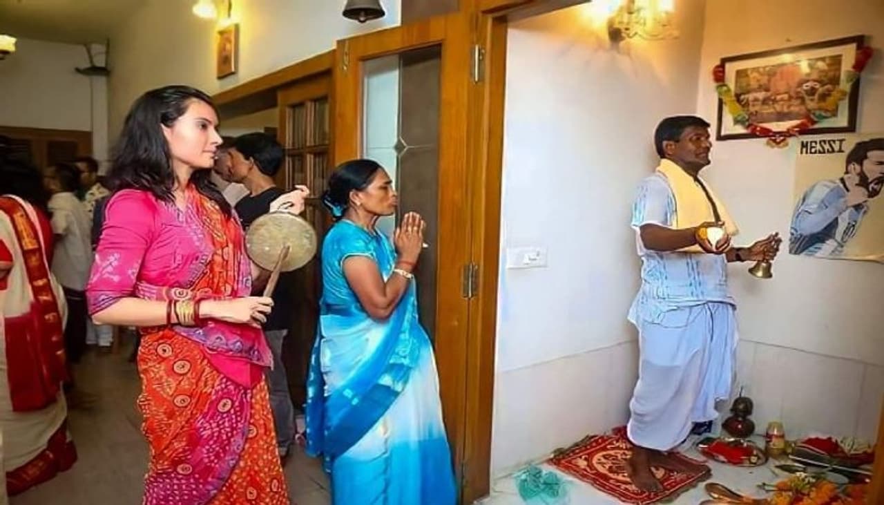 বাড়িতে অতিথির দল। তাঁদের সামনেই তিনি মেঝেয় ‘বাবু’ হয়ে বসে। সামনে সিন্নি মাখার গামলা। তাতে নির্দিষ্ট পরিমাণ ময়দা, দুধ, চিনি, রাবড়ি, সন্দেশ, কাজু, কিশমিশের মতো স্বাদু উপকরণ। পাশে হাসিমুখে অর্পিতা। ‘বুম্বা’দা এক মনে সিন্নি মাখছেন!