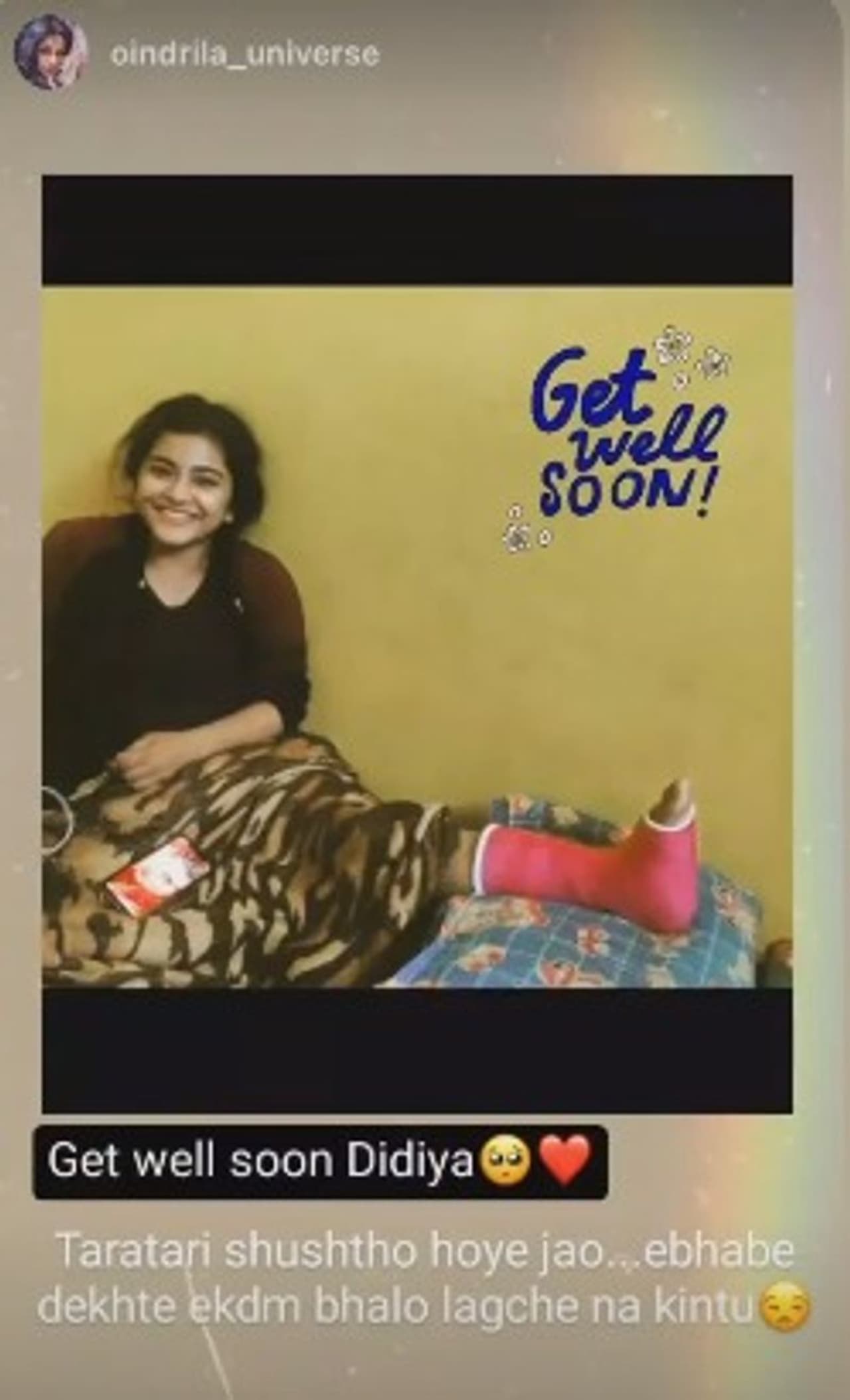 ঐন্দ্রিলা নিজের সোশ্যাল মিডিয়ায় এই খবর শেয়ার করে নিলেন। সর্বদাই শ্যুটিং সেটে চনমনে মেয়েটি বিছানায়। মোটেও তঁকে এ অবস্থায় দেখতে ভালো লাগছে না, পরিবার থেকে ভক্তমহল, সকলেই ঐন্দ্রিলার দ্রুত আরোগ্য কামনা করল। কয়েকদিন আগেই দাদাগিরির সেটে উপস্থিত হয়েছিল ঐন্দ্রিলা সাহা, সেখানেই তাঁকে দেখতে পাওয়া যায় অনবদ্য খেলে সকলের মন জয় করতে। সেদিন চ্যাম্পিয়ানের ট্রফিও জেতে ঐন্দ্রিলা। করেছিল ফাস্টেস্ট ফিফটি।