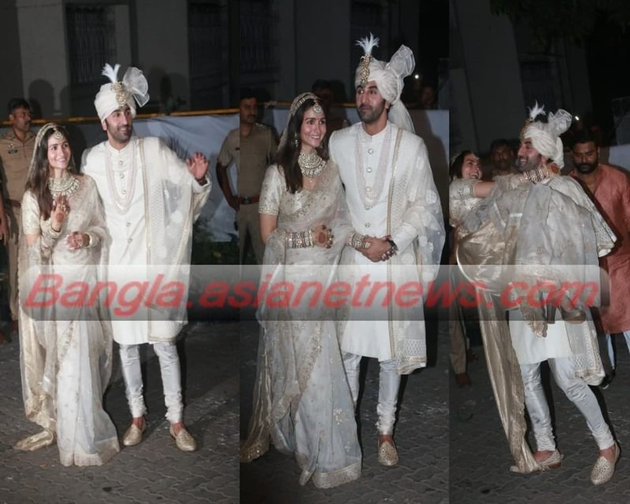 প্রায় পাঁচ বছর সম্পর্কে থাকার পর অবশেষে সাতপাকে বাঁধা পড়লেন আলিয়া ও রণবীর। পঞ্জাবি স্টাইলে বিয়ে করলেন বলেই খবর। সেখানে উপস্থিত ছিলেন পরিবার-পরিজন ও ঘনিষ্ঠ বন্ধুরা। উপস্থিত ছিলেন নীতু কাপুর, মহেশ ভাট, সোনি রাজদান, শাহিন ভাট, ঋদ্ধিমা কাপুর, করিনা, করিশ্মা, রণধীর কাপুর, পূজা ভাট, রাহুল ভাট, লাভ রঞ্জন, অয়ন মুখোপাধ্যায়রা। জীবনের এই বিশেষ দিনে ম্যাচিং পোশাক পরেছিলেন এই তারকা দম্পতি। আলিয়ার পরনে ছিল সাদা শাড়ি। তার উপর গোল্ডেন কাজ করা ছিল। আর রণবীরের পরনে ছিল সাদা পাঞ্জাবি আর মাথায় পাগড়ি। বিয়ের পরই একসঙ্গে পাপারাৎজিদের ক্যামেরার সামনে আসেন তাঁরা। আর সেখানেই রণবীর কোলে তুলে নেন নববধূকে। একসঙ্গে ক্যামেরায় পোজ দিতেও দেখা গিয়েছে তাঁদের। তারপরই নববধূকে কোলে তুলে নিয়ে সেখান থেকে চলে যান এই তারকা দম্পতি।