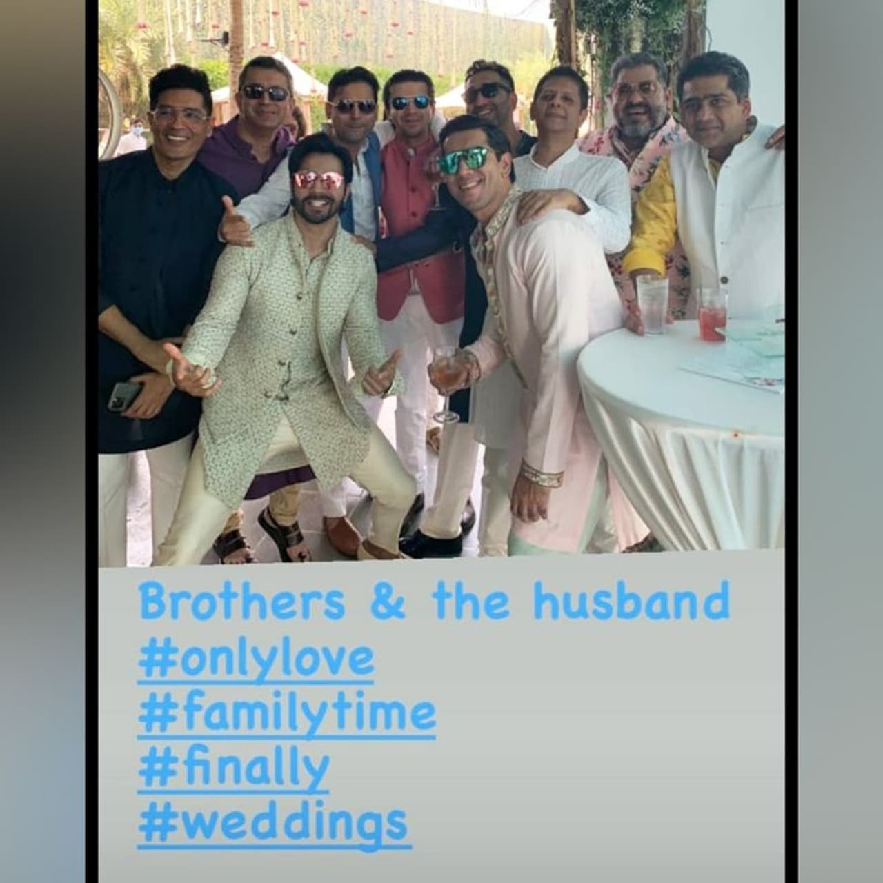 বিয়ের আসর থেকে প্রথম ছবি ফাঁস মুহূর্তে ভাইরা হয়ে ওঠে বরুণের সঙ্গীতের ছবি নেট দুনিয়ায় নজর কাড়ে দুলহা বরুণ বন্ধুদের সঙ্গে খুশ মেজাজে পোজ