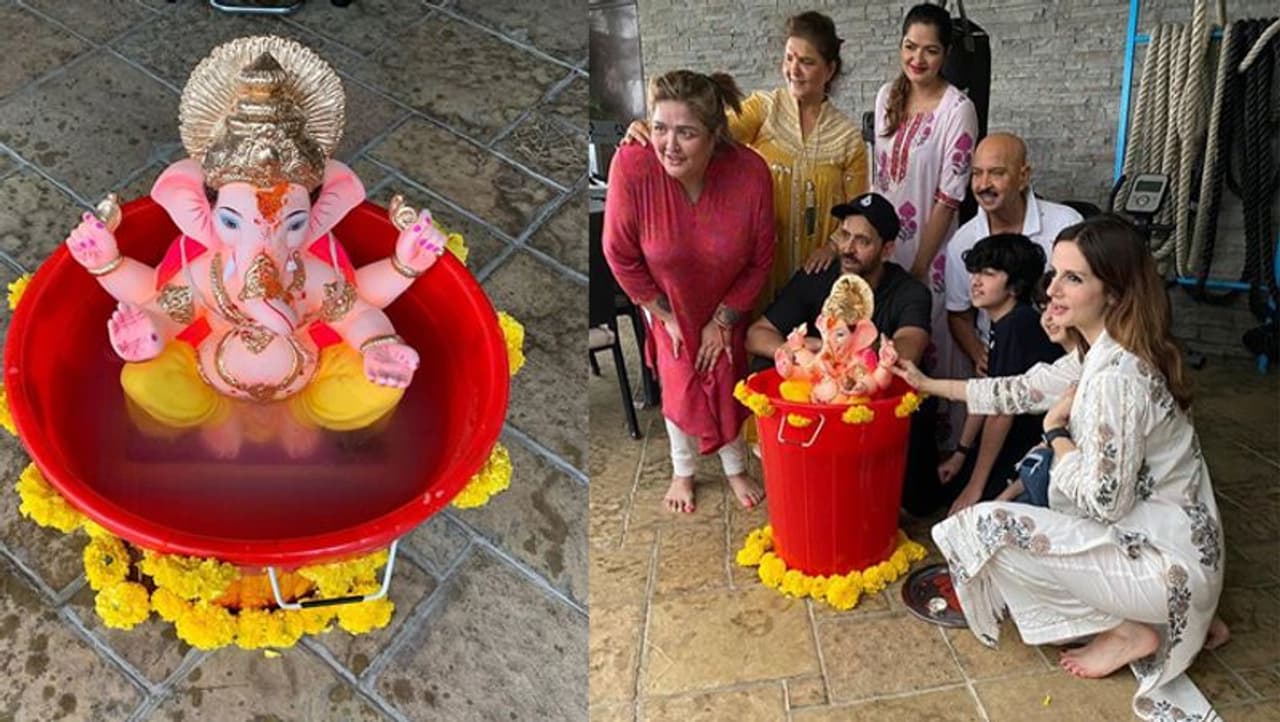 করোনার জেরে বাড়ির বাইরে পা রাখা নয় বাড়িতেই তাই ঘরোয়া পুজোয় মাতল বি-টাউন রবিবার দিনভয় গণেশ বিসর্জন বাড়িতেই আয়োজন করলেন হৃত্বিক রোশান