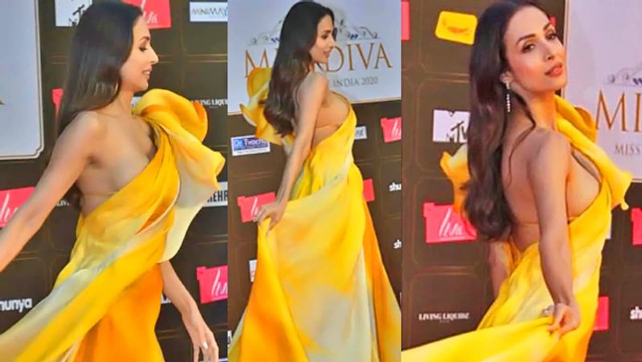 সম্প্রতি মিস ডিভা প্রতিযোগিতার মঞ্চে হট লুকে ধরা দিলেন মালাইকা। এই অনুষ্ঠান সঞ্চালনার দায়িত্ব ছিল মালাইকা আরোরার ওপর। সেই উপলক্ষেই সকলের নজর কাড়তে হলুদ গাউনে সেজে উঠেছিলেন মালাইকা। রেড কার্পেটে হাজির হতেই তাক লাগালেন অভিনেত্রী। পোশাকের ডিজাইন দেখাতে গিয়ে তা ধরে ঘুরলেন মালাইকা। আর তাতেই বিপত্তি।