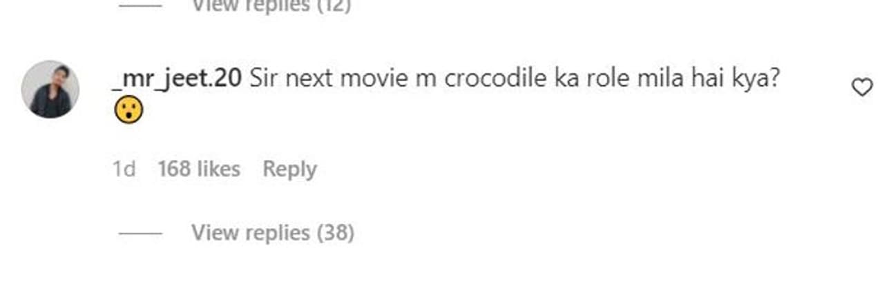 কয়েকজন আবার সলমনকে কুমিরের সঙ্গে তুলনা করেছেন। মজা করে তাঁরা লিখেছেন, "স্যার পরবর্তী ছবিতে কি কুমিরের চরিত্রে অভিনয় করবেন?" আরও একজন লেখেন, "একবার যখন আমি জলে নেমে পড়েছি তখন কুমিরের কথাও আর শুনব না।"