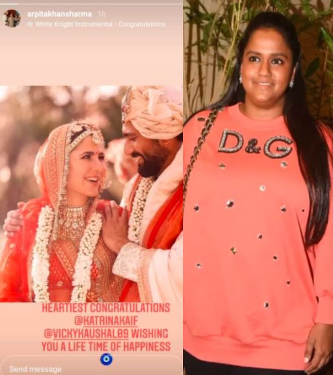 সলমন খানের পরিবারের সঙ্গে ক্যাটরিনা কাউফের ঘনিষ্ঠ সম্পর্কের কথা নতুন করে বলার কিছু নেই। বলিউডের 'ভাইজান'-এর সঙ্গে সম্পর্ক থাকাকালীন ও সম্পর্কভেঙে যাওয়ার পরও পরিবারের একাধিক ব্যক্তিত্বের সঙ্গে ঘনিষ্ঠ সম্পর্ক ছিল ক্যাটরিনা কাইফের। বিয়ের পর সোশ্যাল মিডিয়ায় বান্ধবীকে শুভেচ্ছা জানাতে ভোলেননি সলমন খানের বোন অর্পিতা খান শর্মা। সোশ্যাল মিডিয়ায় নব দম্পতির ছবি শেয়ার করেছেন অর্পিতা। সঙ্গে ক্যাপশনে লিখেছেন, "হৃদয়ের অভিনন্দন, ক্যাটরিনা কাইফ এবং ভিকি কৌশল...আপনাদের সারাজীবন সুখের কামনা করছি," ইনস্টাগ্রাম স্টোরিতে এই শুভেচ্ছা বার্তা পাঠিয়েছেন সলমন খানের বোন। যদিও ক্যাটরিনা কাইফের বিয়ে নিয়ে কোনও মুখ খোলেননি বলিউড সুপার স্টার সালমন খানও।