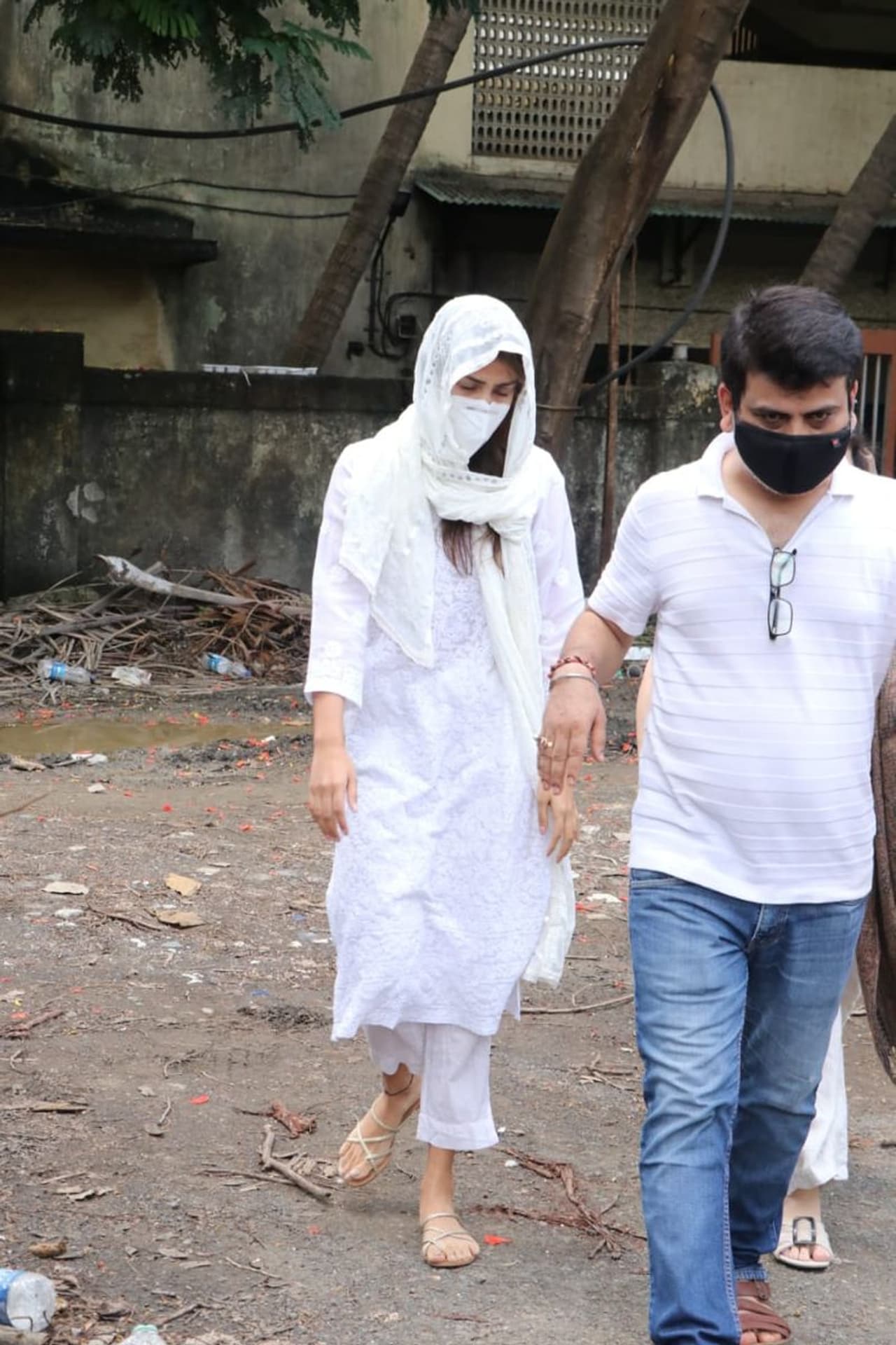 পরণে সাদা সালোয়ার কামিজ, মুখে মাস্ক, ওড়নার আড়ালে নিজেকে প্রায় ঢেকে নিয়েছেন রিয়া। ছলছল চোখে ক্যামেরাবন্দি হয়েছেন রিয়া।সূত্র থেকে জানা গেছে, সুশান্তের মৃত্যুর সঙ্গে তার কোনও যোগ রয়েছে কিনা তা জানতে জিজ্ঞাসাবাদ করা হবে রিয়াকে। এবং রিয়ার বয়ানও রেকর্ড করবে মুম্বই পুলিশ। সুশান্তের মৃত্যুর সমস্ত দিক খতিয়ে দেখছে মুম্বই পুলিশ। দেখে নিন পোস্টটি।