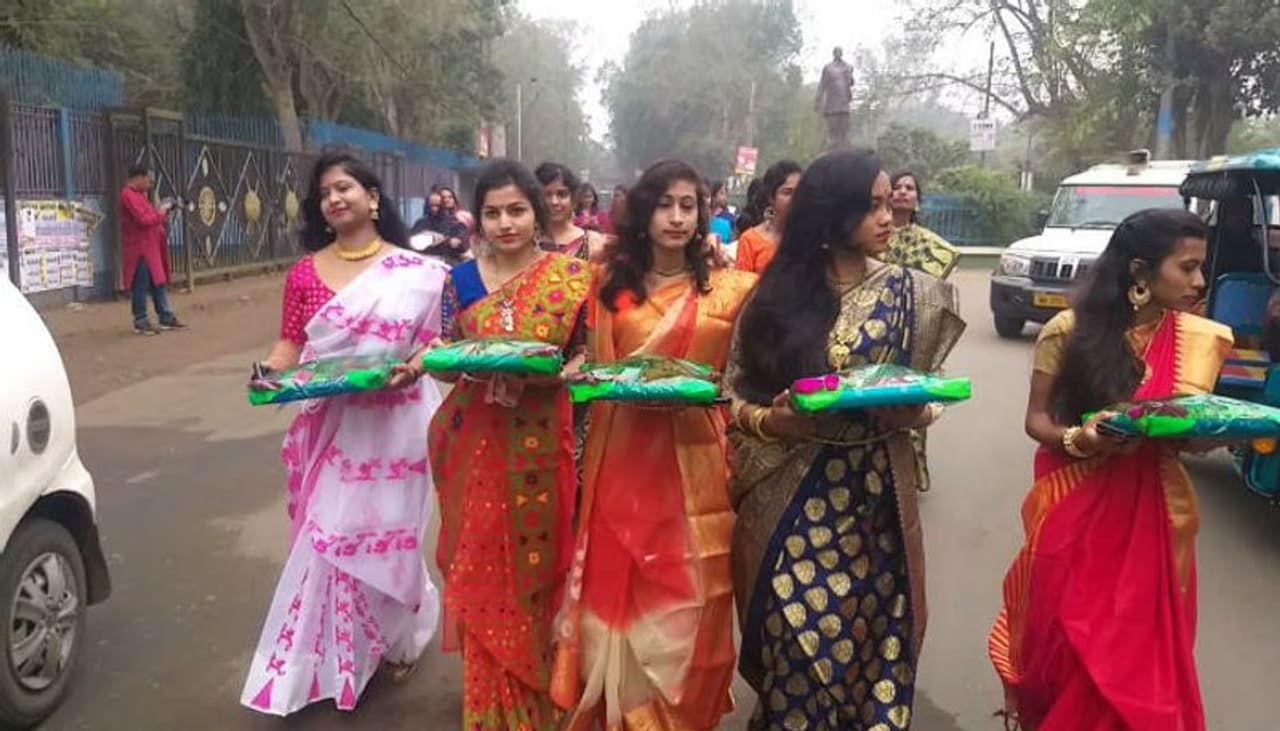 সকাল থেকেই গার্গী, নিবেদিতা, সরোজিনী, মিরাবাঈয়ের আবাসিক ছাত্রীরা বিয়ের মত গায়ে হলুদের সাজে তত্ত্বের ডালা সাজিয়ে রঙ বেরঙের শাড়ি পরে হাজির হয়েছিলেন অরবিন্দ, নেতাজি, চিত্তরঞ্জন, বিবেকানন্দ ও রবীন্দ্র ছাত্রাবাসে। একই ভাবে ছেলেদের ছাত্রাবাস থেকে উপহারের ডালি সাজিয়ে বাদ্যযন্ত্র সহকারে ছাত্ররা আসেন ছাত্রীদের আবাসনে।