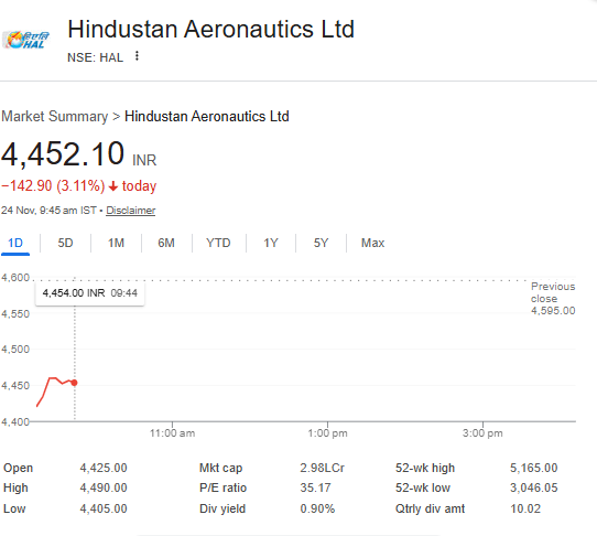 শুক্রবার দুবাই এয়ার শোতে একটি দুর্ঘটনা ঘটে। তেজাস এমকেওয়ান হালকা যুদ্ধ বিমান বিধ্বস্ত হয়, যার ফলে পাইলট নিহত হন। গত দুই বছরে এটি দ্বিতীয়বারের মতো এই ধরনের ঘটনা। দেশের শীর্ষস্থানীয় প্রতিরক্ষা সংস্থা হিন্দুস্তান অ্যারোনটিক্স এই বিমানটি তৈরি করে। দুর্ঘটনার খবরের পর, শুক্রবার এর শেয়ারের দাম প্রায় তিন-চতুর্থাংশ কমে ৪,৫৯৩ (হিন্দুস্তান অ্যারোনটিক্সের শেয়ার মূল্য) এ বন্ধ হয়। আজ এই শেয়ারের থেকে কী আশা করা যায় তা জেনে নিন।