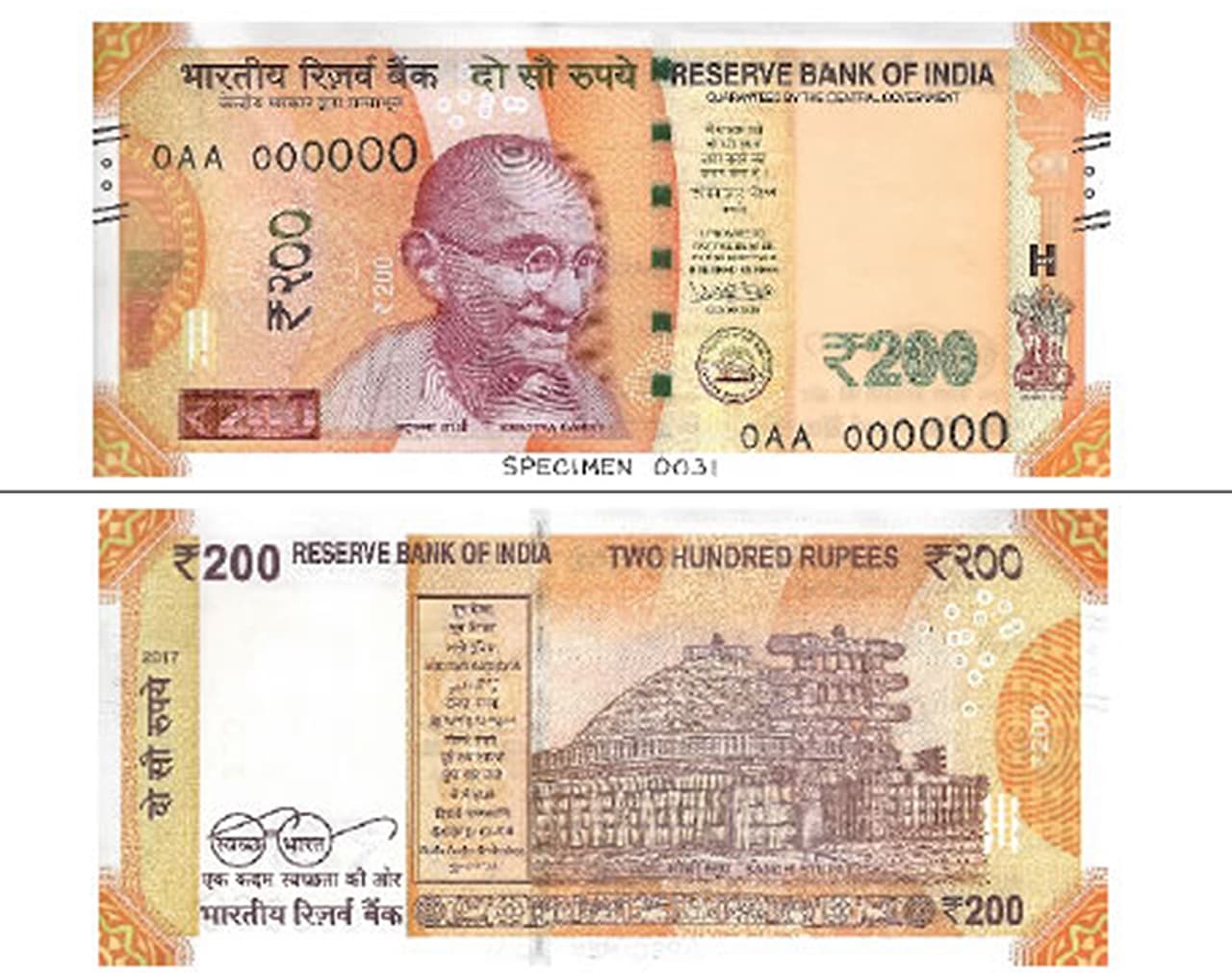 নোটের বাঁদিকে দেবনগরী হরফে ২০০ লেখা থাকবে।