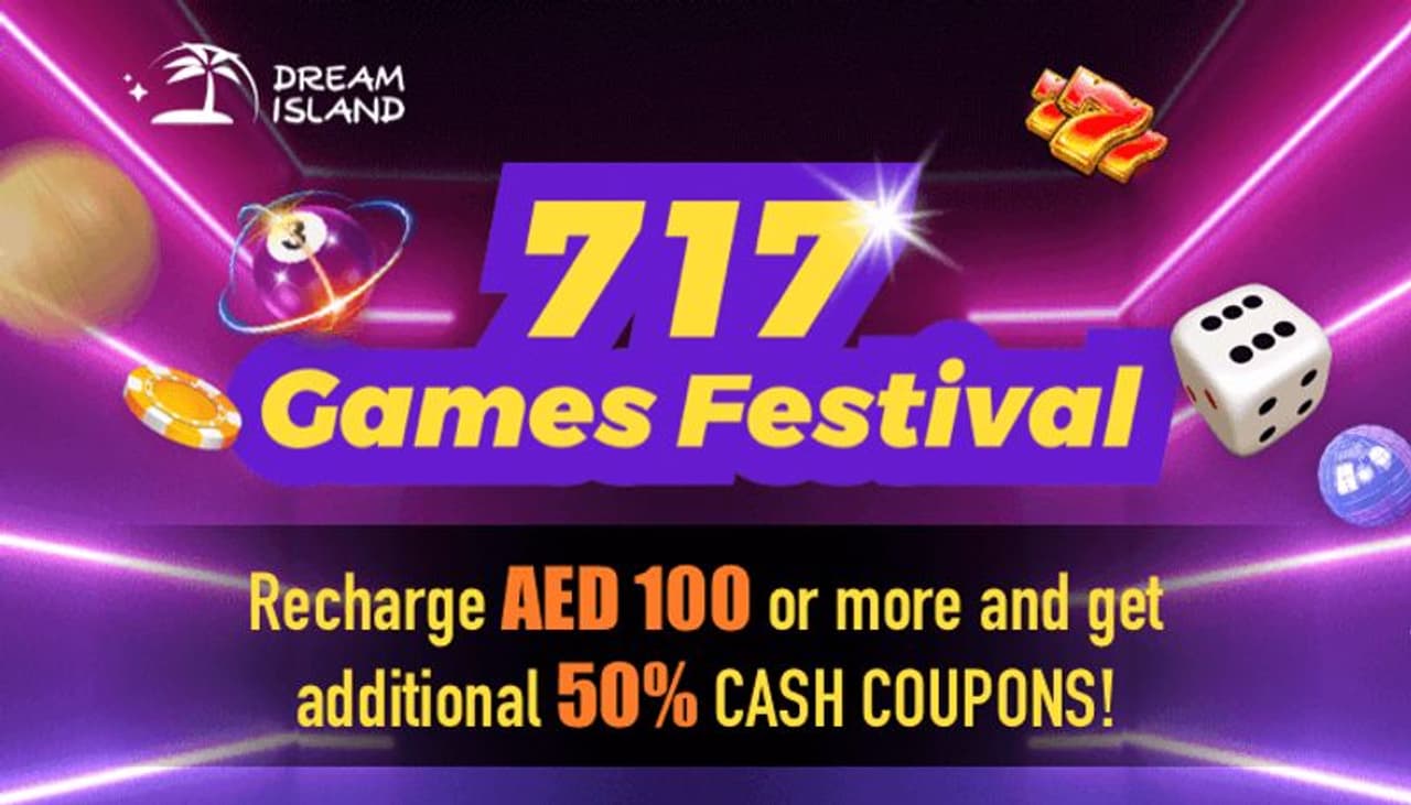 ৭১৭ গেমস ফেস্টিভ্যালের মধ্যে দিয়ে ড্রিম আইল্যান্ড ২০টি নতুন খেলাকে নিয়ে এসেছে। প্রতিটি মিনিটে এই খেলায় অংশ নেওয়া ইউজারদের পুরস্কৃত করার সুযোগও রাখা হয়েছে। ইউএই-এর বাসিন্দাদের জন্য এই খেলাটি মূলত তৈরি করা হয়েছিল এবং সেই সঙ্গে এই খেলায় এক অসাধারণ মজাও রয়েছে তাও নিশ্চিত করা হয়েছে। নতুন এবং পুরনো ইউজারদের সকলের কাছেই অসাধারণ সব গেমপ্লেস এবং চমকদার সব প্রোমোশন জয়ের সুযোগও রয়েছে এখানে। এমনকি এখানে ১০০AED বা তার বেশি রিচার্জ করলে ৫০% অতিরিক্ত নগদ কুপন পাওয়ারও সুযোগ রাখা হয়েছে।