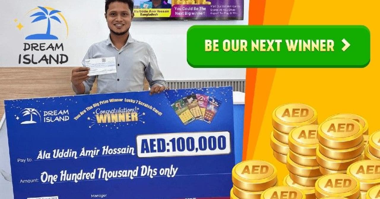 আরেক ভাগ্যবান বিজয়ী যিনি ভাগ্য পরিবর্তন করেছেন তিনি হলেন বাংলাদেশের আলা উদ্দিন। তিনি বিদেশ সফর থেকে আবুধাবিতে ফিরে আসছিলেন যখন তিনি ড্রিম আইল্যান্ড এয়ারপোর্ট স্টোর দেখেন এবং অবিলম্বে কৌতূহলী হয়ে ওঠেন। তিনি প্ল্যাটফর্ম সম্পর্কে শুনে মনে রেখেছিলেন এবং একটি স্ক্র্যাচ কার্ড কেনার সিদ্ধান্ত নিয়েছিলেন, যা তার জীবনের সেরা সিদ্ধান্ত হিসাবে পরিণত হয়েছিল। তিনি ১০০,০০০ ধিরাম- এর বিশাল জয় পেয়েছিলেন। এই খেলা খেলে, তার আজীবন স্বপ্ন বাস্তবায়নের কাছাকাছি এসেছিলেন।