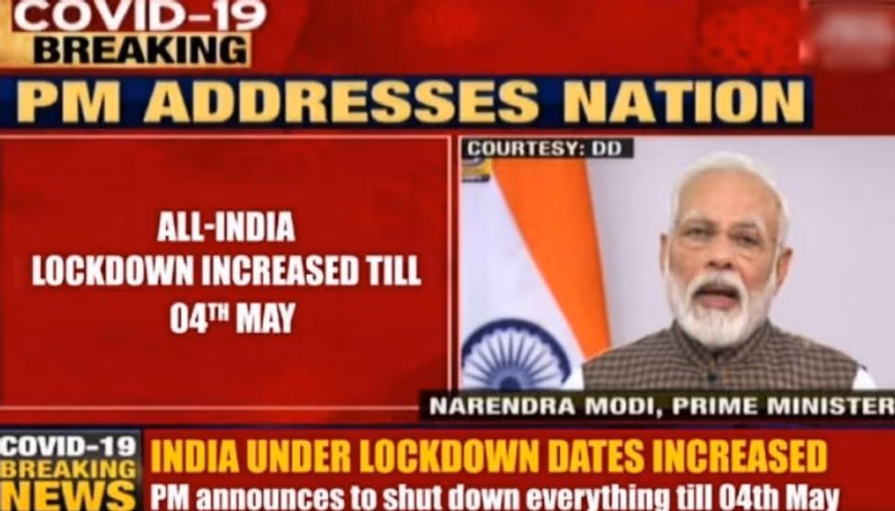 লকডাউন-এর সময়সীমা ৪ মে পর্যন্ত বাড়ানো হলপ্রধানমন্ত্রী নরেন্দ্র মোদী স্বয়ং এই ঘোষণা করলেনএই দাবি করে টিভি ভাষণের একটি স্ক্রিনশট-সহ আসছে বার্তাএটা কি সত্যি না ভুয়ো