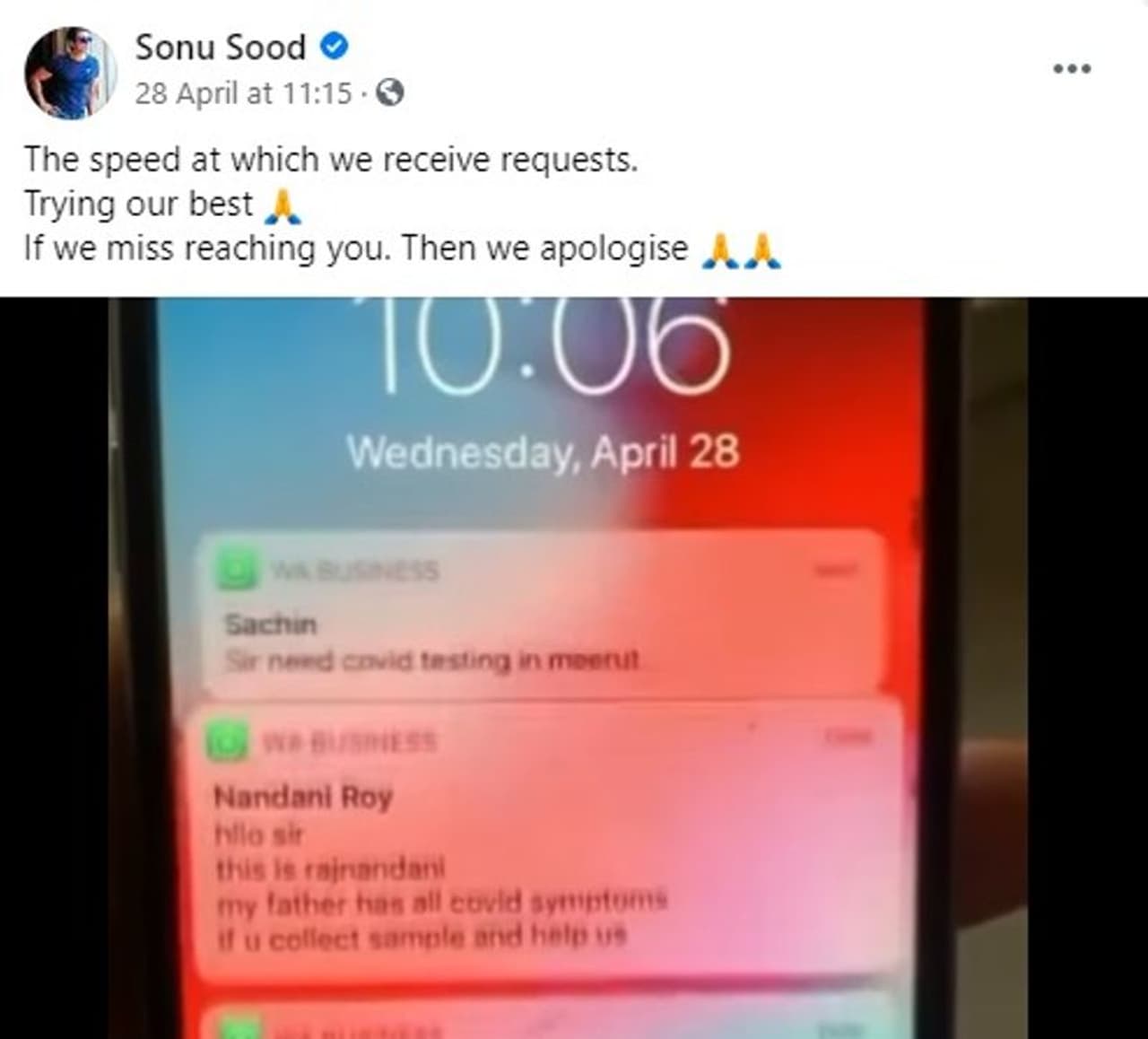 এই পরিস্থিতিতে সোশ্যাল মিডিয়ায় হঠাৎই ক্ষমা চাইলেন তিনি। হাজার হাজার মানুষের ভরসা এখন সোনু। তাই নিজের ফোন খুলে দেখিয়ে দিলেন কীভাবে ঝড়ের বেগে আবেদন ঢুকছে। এত ম্যাসেজের মধ্যে কারুরটা যদি চোখ এড়িয়ে যায়, সাহায্য যদি সময় মত না পৌঁছে দেওয়া যায়, তার জন্য তিনি ক্ষমা চাইলেন সকলের কাছে। নিজের ফোনের সেই ভিডিও শেয়ারও করলেন তিনি নেট দুনিয়ায়।