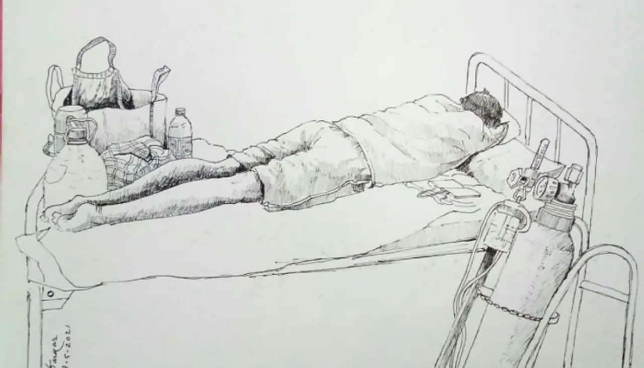 করোনার আতঙ্কে বিধ্বস্ত গোটা দেশ প্রতিদিন প্রাণ হারাচ্ছেন হাজারো মানুষ এই পরিস্থিতিতে চিত্রশিল্পীর অভিনব প্রয়াস হাসপাতালে নিজেও আঁকছেন ও অন্যদেরও শেখাচ্ছেন