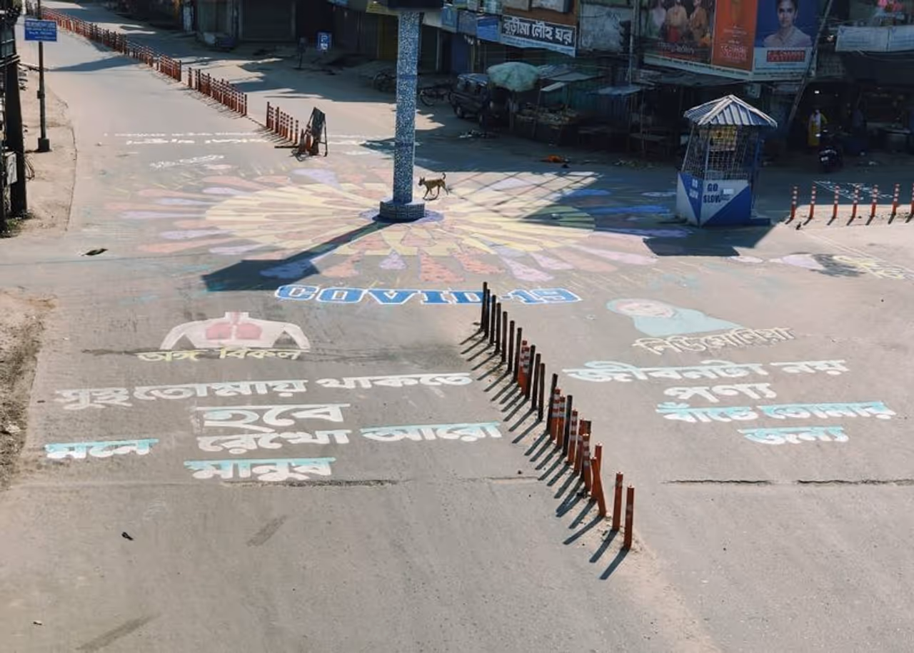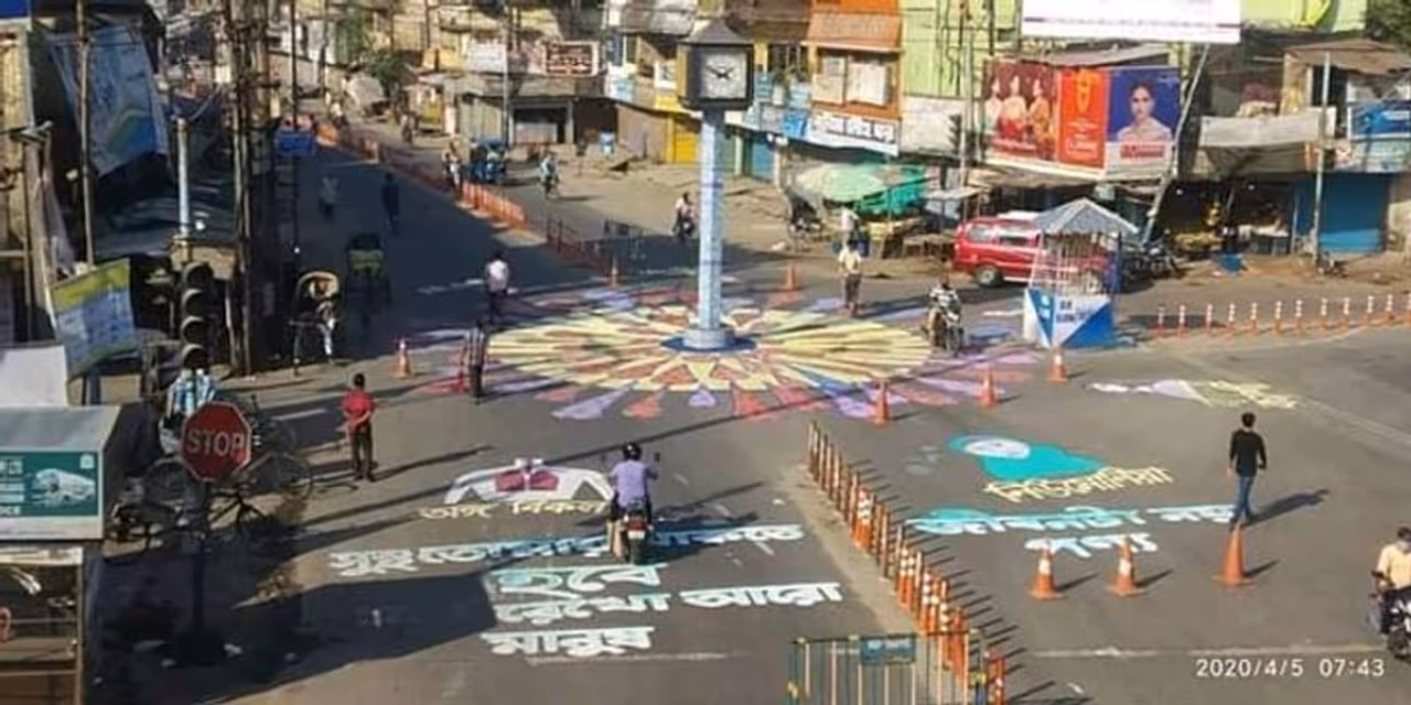 পুলিশের লাঠির আঘাতেও মানুষকে বাগে আনা যাচ্ছে না। করোনা সচেতনতায় এবার রাজপথকে সাজিয়ে তোলার উদ্যোগ নিল দক্ষিণ দিনাজপুর জেলা প্রশাসন। জোরকদমে রাস্তায় আলপনা দেওয়ার কাজ চলছে বালুরঘাটে।