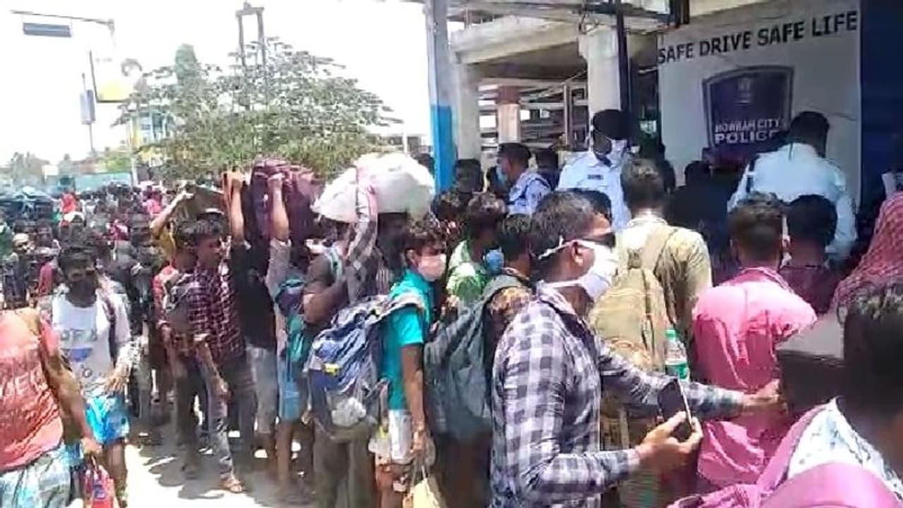 এই পরিস্থিতিতে মানবিক পুখ পুলিশের। সাঁতরাগাছি স্টেশনে ভিন রাজ্য থেকে আসা পরিযায়ী শ্রমিকদের পাশে দাঁড়ালো হাওড়া কোনা ট্রাফিক গার্ড। প্রতিদিন প্রায় একহাজার শ্রমিককে খাওয়ানোর পর পৌঁছে দেওয়া হচ্ছে বাড়িতে।