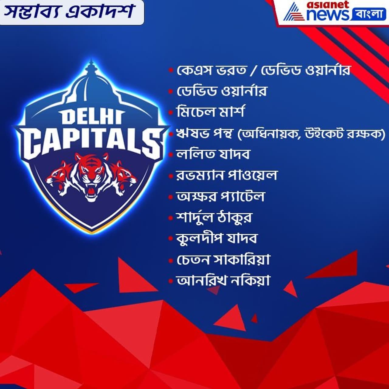 দিল্লি ক্যাপিটালসের সম্ভাব্য একাদশ-