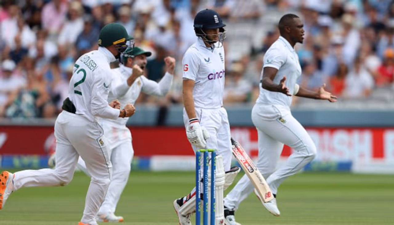 ম্য়াচে টস জিতে বোলিং করার সিদ্ধান্ত নেয় দক্ষিণ আফ্রিকার। সেই সিদ্ধান্ত যে ভুল ছিল না তা প্রমাণ করে দেন প্রোটিয়া বোলাররা। প্রথম ইনিংসের শুরু থেকেই নিয়মিত ব্যবধানে উইকেট হারিয়ে চাপে পড়ে যায় ইংল্যান্ড দল। মাত্র ১৬৫ রানেই শেষ হয়ে যায় বেন স্টোকসের দলের ইনিংস। অলি পোপ একা ৭৩ রানের লড়়কু ইনিংস না খেললে আরও লজ্জাজনক স্কোরের সম্মুখীন হতে হত ইংল্যান্ডকে। দক্ষিণ আফ্রিকার হয়ে প্রথম ইনিংসে কাগিসো রাবা়ডা ৫, আনরিখ নকিয়া ৩ ও মার্কো জানসেন ২টি করে উইকেট নেন। প্রথন ইনিংসে রান তাড়া করতে নেমে লর্ডসের উইকেটে খুব বড় স্কোর করতে পারেনি প্রোটিয়ারা। ৩২৬ রানে শেষ হয় দক্ষিণ আফ্রিকার ইনিংস। দলের হয়ে সর্বোচ্চ ৭৩ রান করেন সারেল এরউই। এছাড়া মার্কো জানসেন ৪৮, ডিন এলগার ৪৭ রান করেন। ব্যাটিং লাইআপের শেষের দিকে কেশব মহারাজ ৪১ ও আনরিখ নকিয়া ২৮ রানের মূল্যবান ইনিংস খেলে লিড অনেকটা বাড়িয়ে দলের। প্রথম ইনিংসে ইংল্যান্ডের হয়ে স্টুয়ার্ট ব্রড ও বেন স্টোকস ৩টি করে, ২টি উইকেট পান ম্যাথিউ পটস, একটি করে উইকেট পান জিমি অ্যান্ডারসন ও জ্যাক লিচ। প্রথন ইনিংসে ১৬১ রানের বিশাল লিড পায় দক্ষিণ আফ্রিকা।