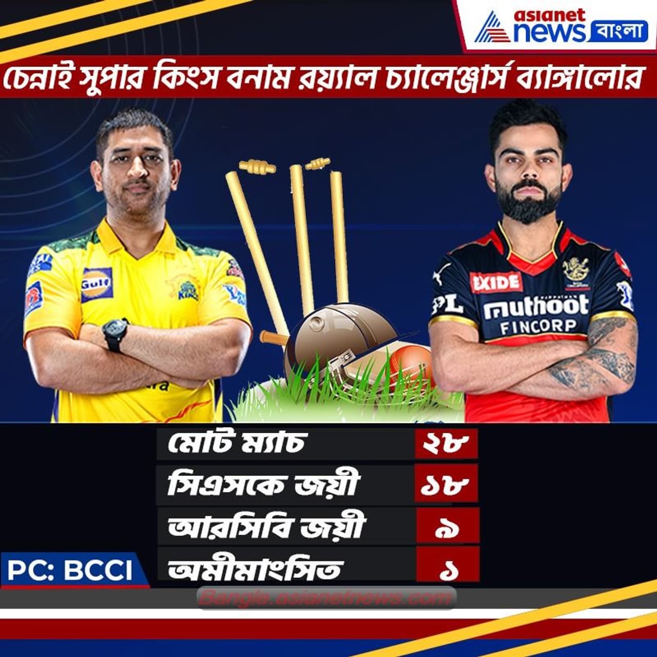 আইপিএলের ইতিহাসে দুই দলের মুখোমুখি সাক্ষাতের পরিসংখ্যানে আরসিবির থেকে অনেকটা এগিয়ে রয়েছে সিএসকে। এখনও পর্যন্ত দুই দল মোট ২৮ বার মুখোমুখি হয়েছে। তার মধ্যে ১৮টি ম্যাচেই জয় পেয়েছে মহেন্দ্র সিং ধোনির দল। অপরদিকে বিরাট কোহলির দল জয় পেয়েছে ৯টি ম্যাচে। ১টি ম্যাচ অমীমাংসিত রয়েছে। ফলে দুই দলের ম্যাচ জয়ে শতাংশের বিচারে প্রায় ৭০ ভাগ ম্যাচেই জয় পেয়েছে চেন্নাই সুপার কিংস। আজকের ম্যাচে সেই পরিসংখ্যান আরও উন্নত করাই লক্ষ্য এমএস ধোনির লক্ষ্য। অপরদিকে, শেষ চারের লক্ষ্য আজকের ম্যাচে জয়ের পাশাপাশি পরিসংখ্য়ানে উন্নতি ঘটানোই লক্ষ্য বিরাট ব্রিগেডের।